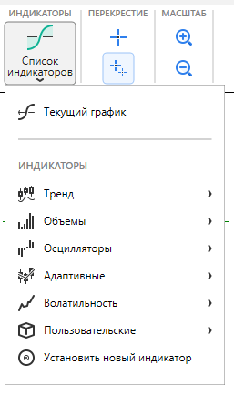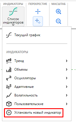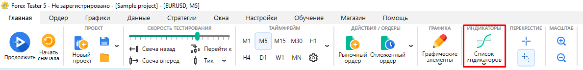 Для добавления индикатора нажмите кнопку “Список индикаторов” на вкладке Главная.