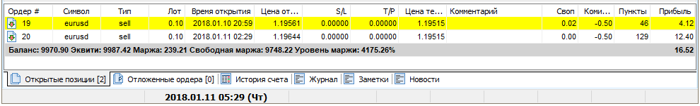 Чтобы закрыть ордер вручную, дважды щелкните на строке нужного ордера на вкладке Открытые позиции в левом нижнем углу терминала.
