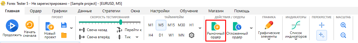 Нажмите кнопку “Рыночный ордер” на вкладке Главная.