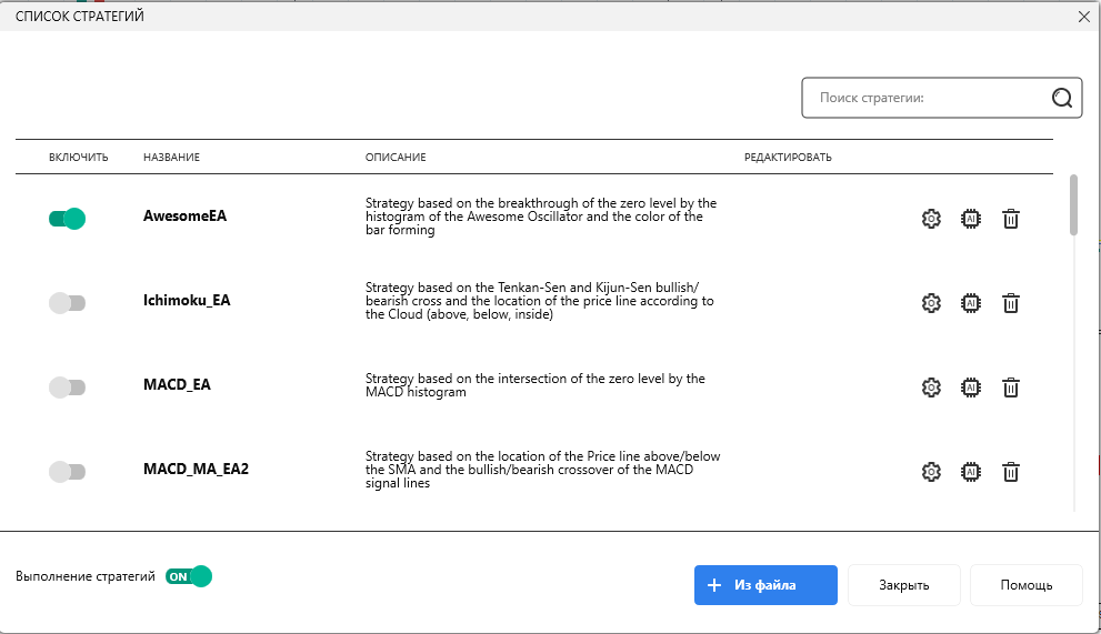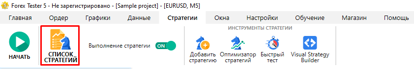 Нажмите кнопку “Список стратегий” на вкладке Стратегии.