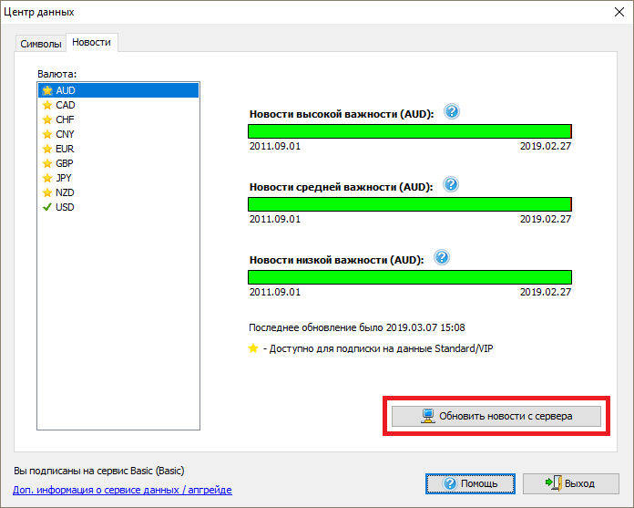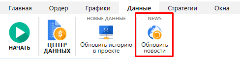 Нажмите кнопку “Обновить новости” на вкладке Данные.