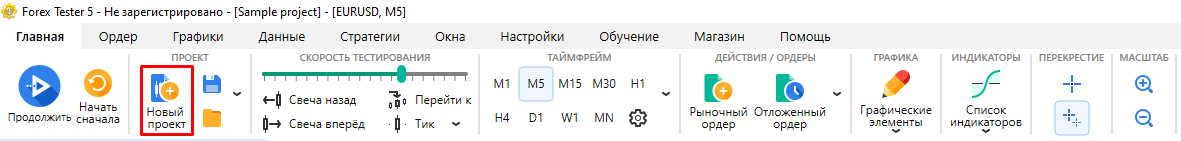 Нажмите на кнопку “Новый проект” на вкладке Главная.
