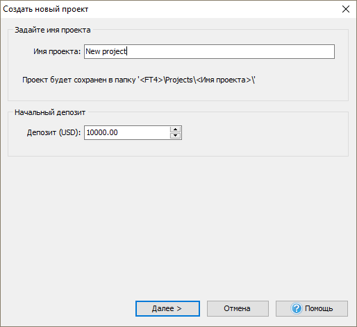 Назовите проект и затем нажмите “Далее”.