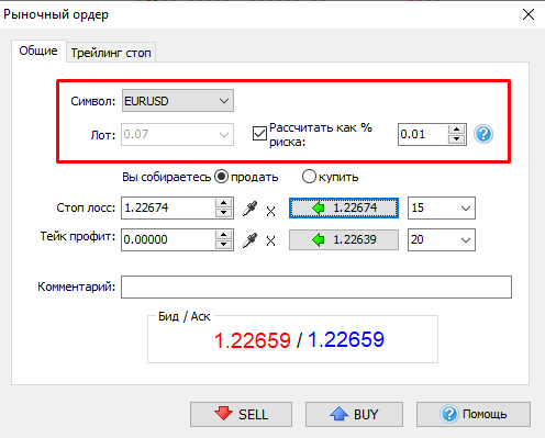 Обратите внимание, что расчет лота на основе риска требует ввода значения Стоп лосса.