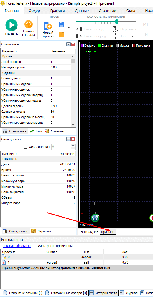 Перейдите на вкладку “Прибыль”, расположенную под окном графика.