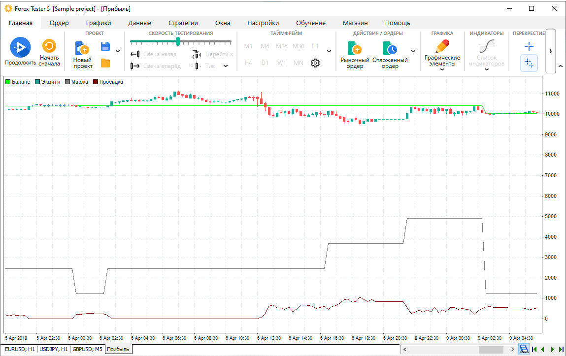 График прибыли - это индивидуальный график, который содержит график свечей и три дополнительные линии: