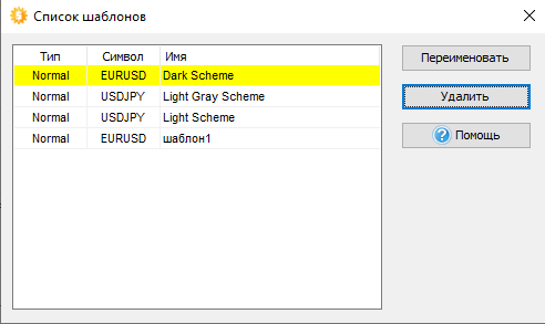 Шаблон - это полностью настроенная конфигурация окна графика, включая индикаторы, инструменты для рисования и графические цветовые схемы.