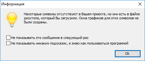 Обратите внимание, что загруженный десктоп будет применяться только к той валютной паре, для которой он был первоначально сохранен. Если вы сохраните десктоп для определенной валютной пары, а затем выберите новую валютную пару при создании проекта – к ней десктоп не будет применяться. Программа предупредит вас об этом с помощью информационного сообщения, которое вы можете отключить, установив флажок Не показывать это сообщение в следующий раз.