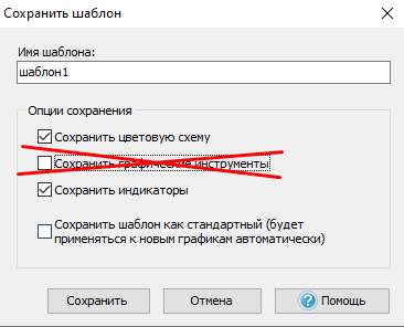 Если Вы хотите применить шаблон к другой валюте, то лучше исключить опцию «Сохранить графические инструменты», так как графические инструменты могут быть некорректно скопированы вследствие разницы цен.