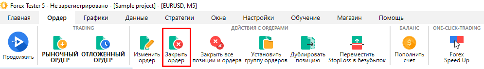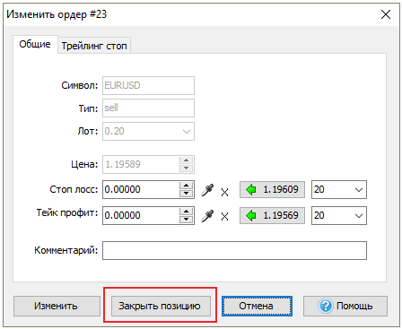 Вы также можете закрыть позицию, нажав кнопку “Закрыть ордер” на вкладке Ордер.