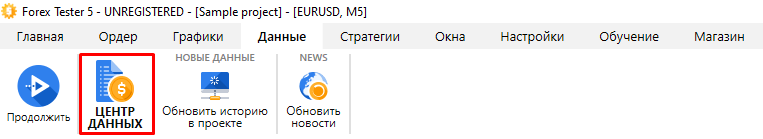 Нажмите кнопку “Центр данных” на вкладке Данные.